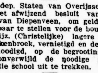 Okkenbroek kreeg in 1923 een protestants-christelijke school. Dit ging niet zonder slag of stoot. De gemeenteraad reageerde in het begin afwijzend op een verzoek van de “Vereeniging tot stichting en instandhouding eener protestantsch-christelijke school te Okkenbroek, gemeente Diepenveen.”