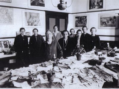De dames werkten voor de bazaar met gans hun hart
