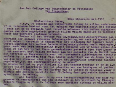 Zes jaar later (1965) is de huisvuilophaaldienst onderwerp van gesprek in een vergadering van Okkenbroeks Belang. De heren Kloosterboer en Bloemenkamp hebben in de kom alle gezinnen bezocht en gevraagd of ze aan de huisvuildienst willen deelnemen. Er blijkt veel belangstelling voor te bestaan. Twaalf gezinnen hebben zich opgegeven. De heer Ludden zal nog enkele adressen bezoeken en daarna het aantal deelnemers aan het gemeentebestuur van Diepenveen doorgeven. Op 24 maart 1965 gaat de lijst met deelnemers naar de gemeente.