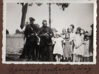 In het jeugdgebouw (de A.R.K.) worden redevoeringen gehouden. Ook voor rookmateriaal is gezorgd. Voor de jeugd is er een reep chocolade. Een artikel in de Telegraaf van 23 april 1955 laat over de perikkelen rondom de komst en verharding van deze weg niets aan duidelijkheid te wensen over: