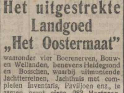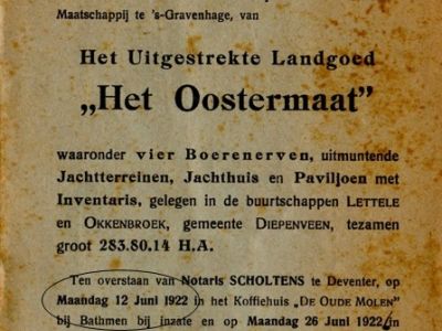 Behalve de jachtpartijen die de krant haalden was er in 1920 een inbraak in de jachthuizen die in de krant kwam. Twee gevaarlijke sujetten van 20 en 25 jaar oud verbleven ongevraagd in de jachthuizen, roofden ze leeg en verontreinigde de jachthuizen. Twee jaar later, juni 1922, viel het Oostermaat ten prooi aan de vlammen. Konijnen kwamen zwartgeblakerd uit hun legers en moesten worden afgemaakt. Datzelfde jaar bood Capadose het landgoed per advertentie te koop aan. De heer Birnie, directeur van exploitatiemaatschappij DAVO te Deventer werd de nieuwe eigenaar. In het midden van de jaren zestig werd het landgoed opnieuw te koop aangeboden. In 1965 werd Het Oostermaet door de gemeente Deventer en de Stichtingen De Verenigde Gestichten en Het Burgerweeshuis en Kinderhuis voor gezamenlijke rekening aangekocht. Later werd de Stichting De Verenigde Gestichten (vanaf 1986 Stichting IJssellandschap) de enige eigenaar. De boerderijen op het Oostermaet kregen mooie namen die tot op heden bewaard zijn gebleven: Het Oostermaat, de Grote Brander, de Kleine Brander, Keurhorst, Westerhof en Oosterhof.