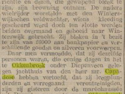 Op landgoed Het Oostermaet werden grote jachtpartijen gehouden. Niet alleen de heer Capadose was een liefhebber van de jacht. Zijn vrouw ( Theodora Adrian Veeren) was eveneens een hartstochtelijk jageres. Krantenartikelen uit die periode maken met enige regelmaat melding van een succesvolle jacht waarbij Capadose een reebok had geschoten. In het bos werden bomen gekapt om de jagers betere schietkansen te geven. Op het landgoed werden Poolse hazen uitgezet ter verbetering van het aanwezige soort. Het was, zo schrijft Johan Struik in Uut den Umtrek, niets bijzonders als per dag, behalve het andere wild, een paar honderd konijnen schoten. In het laatst werd het helemaal een konijnenplaag waar ze boeren in de omgeving (Borgelink, Kloosterboer en Assink) veel last van hadden. Vaak gebeurde het als ze bij het Oostermaat, dat ook eigendom was van Capadose, eerst de konijnen uit de stal moesten jagen voor ze er de koeien in konden drijven. Wellicht is dit in de overleveringen enigszins overdreven maar een kern van waarheid is vermoedelijk aanwezig. Ook werden patrijzen gefokt voor de jacht, die later werden losgelaten. Voor hoofdjachtopziener Teunis ten Velde werd iets verderop in 1916 een boerderij (Zomerdijk) gebouwd waar hij woonde tot 1922.