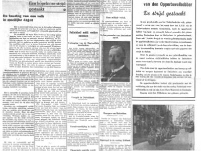 Op 9 april 1945 werd Okkenbroek door de Canadezen bevrijd. Niet alleen vanwege de bevrijding zijn deze laatste dagen van de oorlog Tiny van Ens in het geheugen gegrift. Na enige schermutselingen de dag ervoor, waarbij Duitse en Canadese kogels als het ware over Okkenbroek vlogen, begon op 9 april het echte schieten. Zij vertrouwde haar herinneringen toe aan het papier. Lees hier haar hele verhaal.
