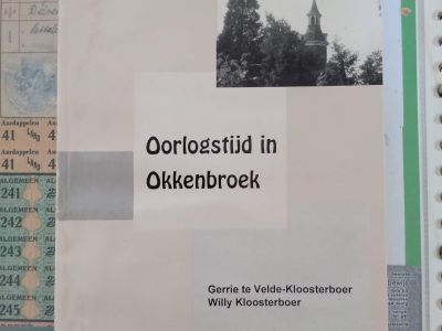 In 116 pagina´s schetsen zij de oorlogsjaren in Okkenbroek. Het boek is gebaseerd op de persoonlijke herinneringen van mensen die deze jaren aan den lijven hebben ondervonden. Voor hen en voor de naoorlogse generatie die de oorlog niet heeft meegemaakt, heeft het tweetal geprobeerd iets vast te leggen van de geschiedenis van Okkenbroek in oorlogstijd. Het boek is niet meer te koop maar in de bibliotheek nog wel te leen. Het zou te ver voeren hier het hele boek over te tikken. Dat ook, zou geen recht doen aan de inspanningen die Gerrie en Willy zich hebben getroost. Hier beperk ik mij tot passages uit Oorlogstijd in Okkenbroek, uit Uut den Umtrek van Johan Struik en niet in de laatste plaats dat wat Tiny van Ens te boek heeft gesteld in Herinneringen uit de oorlogstijd 1940 – 1945.