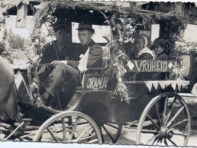 tste plaats door zijn vele werk voor de revue. Dáár lag zijn interesse en dát verbond hem met de mensen uit het dorp. In de oorlog schreef hij verzetsgedichten om de vijand te beschimpen. Het schijnt dat er nog steeds enkele gedichten te vinden zijn in het Deventer Stadsarchief. Jan steunde het ondergronds verzet waar hij kon en was een van de eersten die met zijn huifkar een feestelijke bevrijdingsronde maakte door het dorp. Zussen Diene en Marietje achterin en Jan Schuurmans met hem op de bok.