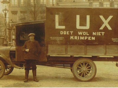Naast het erf van Van Ens stond het koetshuis waar sinds november 1924 Jan Willem Stoevenbelt met zijn vrouw Heintje Meilink woonde. Toen het koetshuis, waar Stoevenbelt zijn slachterij had, in december 1925 afbrandde bood Van Ens de Stoevenbelt’s een aantal weken onderdak waarna ze tijdelijk in het slachthuis zijn gaan wonen. Jan Willem had al vroeg telefoon en ook een vrachtwagen. De tekst is bij velen uit die periode in het geheugen gegrift. Op de linkerzijde: Lux doet de wol niet krimpen, en aan de andere kant Rimo (?) Voor de gezins en fijne was.