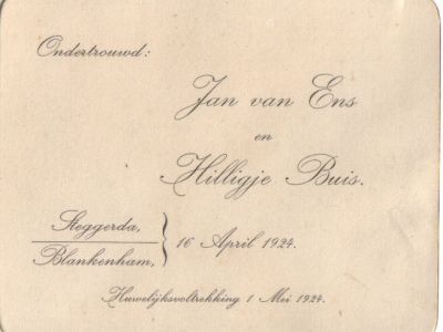 Zowel het echtpaar Van Ens-Buis als het echtpaar Van Ens-Brandsma is begraven in Okkenbroek.