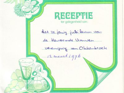 Tijdens de receptie in Ons Centrum ter gelegenheid van een kwart eeuw Hervormde Vrouwenvereniging bracht burgemeester mr. Samuel Crommelin van de toenmalige gemeente Diepenveen de felicitaties over: "Okkenbroek zonder vrouwenvereniging is ondenkbaar."