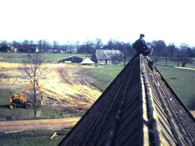 Voor het echter zover was moest De ARK van zijn oude stek verplaatst worden naar de nieuwe plek. Een operatie die met chirurgische precisie werd uitgevoerd en waar Free en Henk Klijn Velderman een mooie zonnige zaterdag voor hadden uitgekozen. Voor het zover was werd het gebouw van zijn sokkel gelicht, werden er wielen onder gezet en, om gewicht te besparen, werden de dakpannen eraf gehaald. Dat was niet de enige hindernis die moest worden overwonnen. De gang die De ARK maakte voerde over het land van Alferink, de sloot langs de Muldersweg, een weg die toen een andere ligging had, werd ‘gedempt’ met boomstammen en niet in de laatste plaats onder de bovengrondse elektriciteitsleiding door. Mensen van de IJsselcentrale in Diepenveen haalde de spanning van de draden en iemand op de nok van het dak hield de draden aan de kant zodat het gevaarte er onderdoor kon. Verhoogde kampen werden afgegraven, de zwarte aarde opzij geschoven. Witte grond werd richting Ons Centrum gebracht.