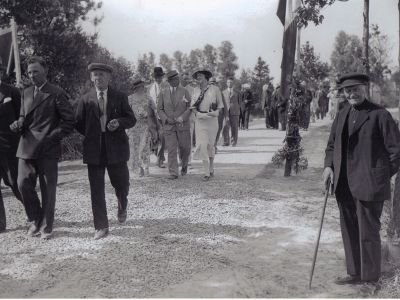 In het jeugdgebouw (de A.R.K.) worden redevoeringen gehouden. Ook voor rookmateriaal is gezorgd. Voor de jeugd is er een reep chocolade. Een artikel in de Telegraaf van 23 april 1955 laat over de perikkelen rondom de komst en verharding van deze weg niets aan duidelijkheid te wensen over: